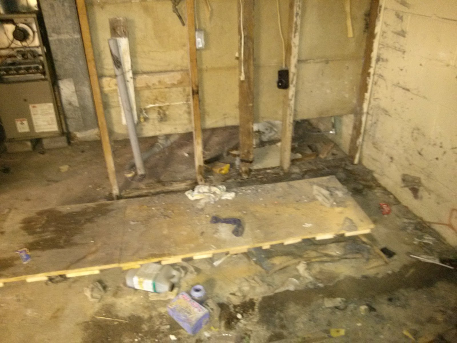 The basement had been used for storage and there were a lot things that had gotten wet. The mildew smell became pretty overpowering during the hot March & April days. Everyone has to wear a mask when working down there, just to be safe.